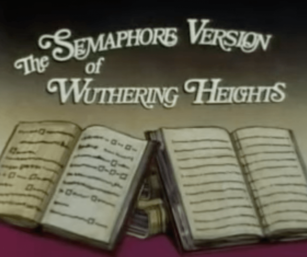 Absolutely — I know exactly the Monty Python clip you’re talking about! It’s the famous “Semaphore Version of ‘Wuthering Heights’” from Monty Python’s Flying Circus where the tragic Victorian romance is entirely acted out using semaphore flags, a delightfully absurd take that playfully mocks how difficult classic literature can be to adapt straight to film. In the sketch, Heathcliff and Catherine communicate their lovesick dialogue by waving semaphore flags, and the whole scene leans hard into Python’s signature surreal, intellectual humour.
